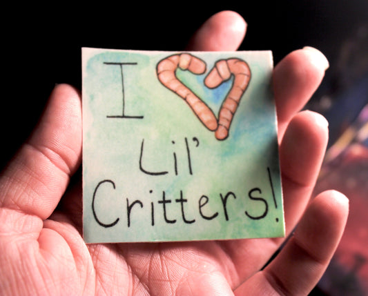 I <3 Critters worm square vinyl sticker